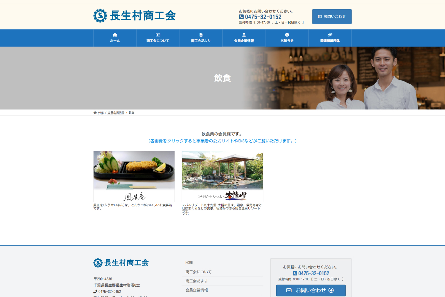 会員の集客の一助となるように、事業者の基本情報と事業内容を発信しています。特に業種別にまとめて該当する会員の情報が見れるようにしました。