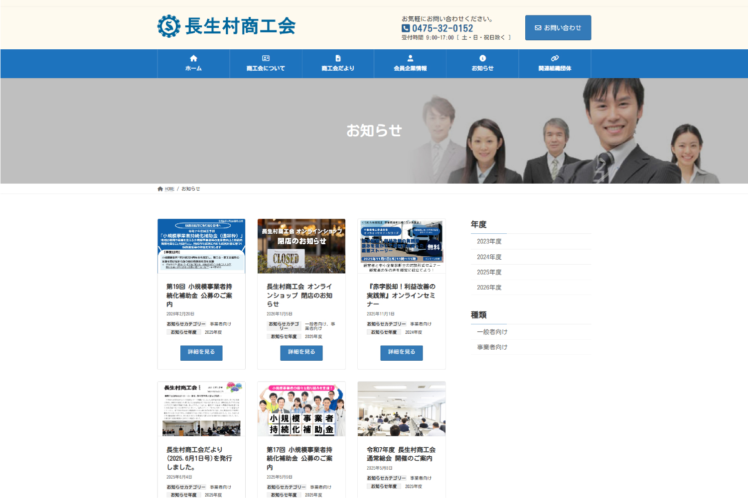 商工会から会員向けに、経営相談会や補助金関連情報、各種セミナーなどのお知らせを随時発信しています。運営業務として新たなお知らせの発信を行っています。